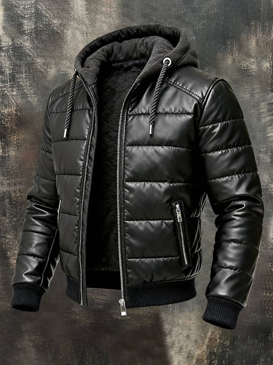 Men's Retro Warm Outdoor Leather Jacket with Hood made of Soft Leather