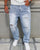 Baggy-fit jeans in light blue acid-wash denim. All-over distressed details with ripped patches on front. Five-pocket design. Zip fly and top button fastening.