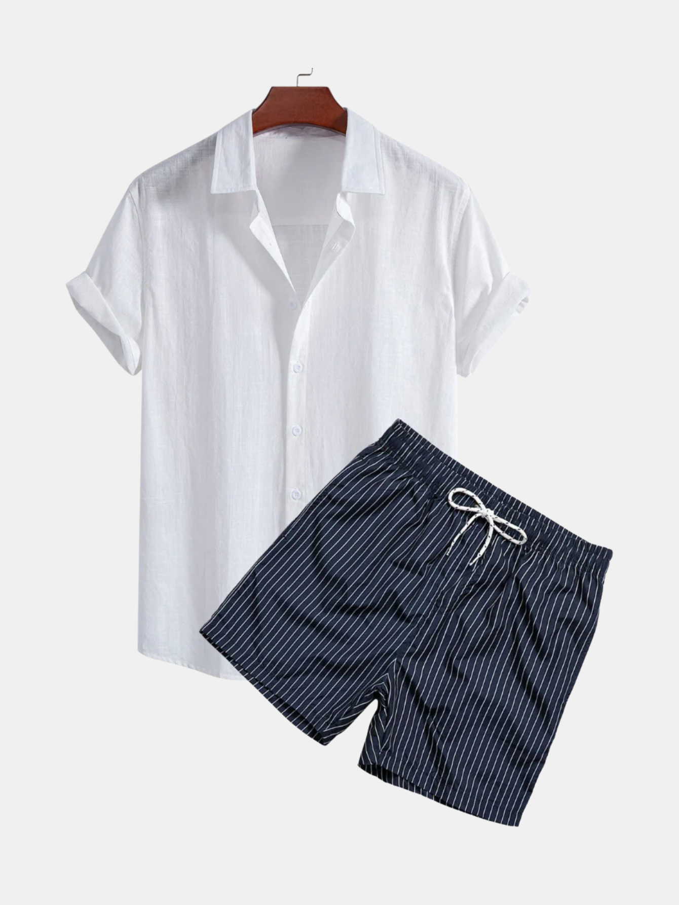 The Aruba Ensemble blends relaxed comfort with refined style. Featuring a lightweight, breathable shirt and coordinating shorts, this set is perfect for warm-weather days while maintaining a polished, effortless aesthetic.