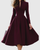 Designed to captivate with timeless elegance, this deep wine midi dress combines classic femininity with a modern edge. The structured bodice and graceful pleated skirt flow beautifully with every step, while the subtle V-neckline adds just the right touch of allure. Perfect for evening gatherings, formal occasions, or special celebrations, it embodies confidence, poise, and understated glamour.