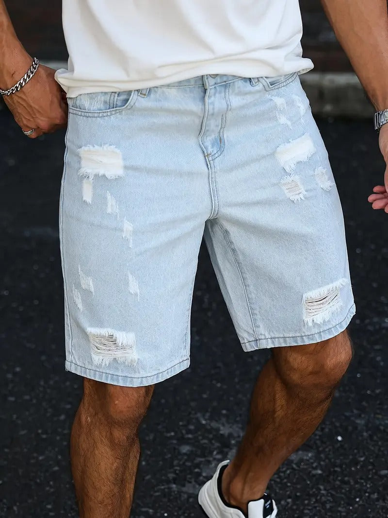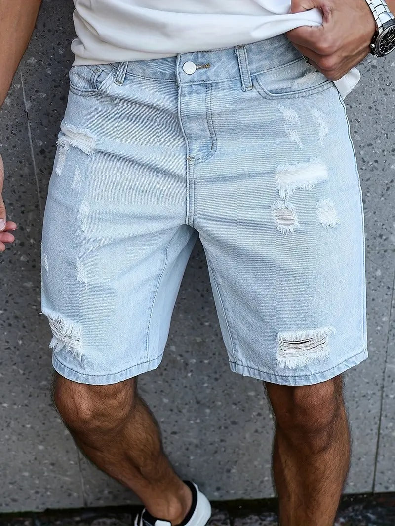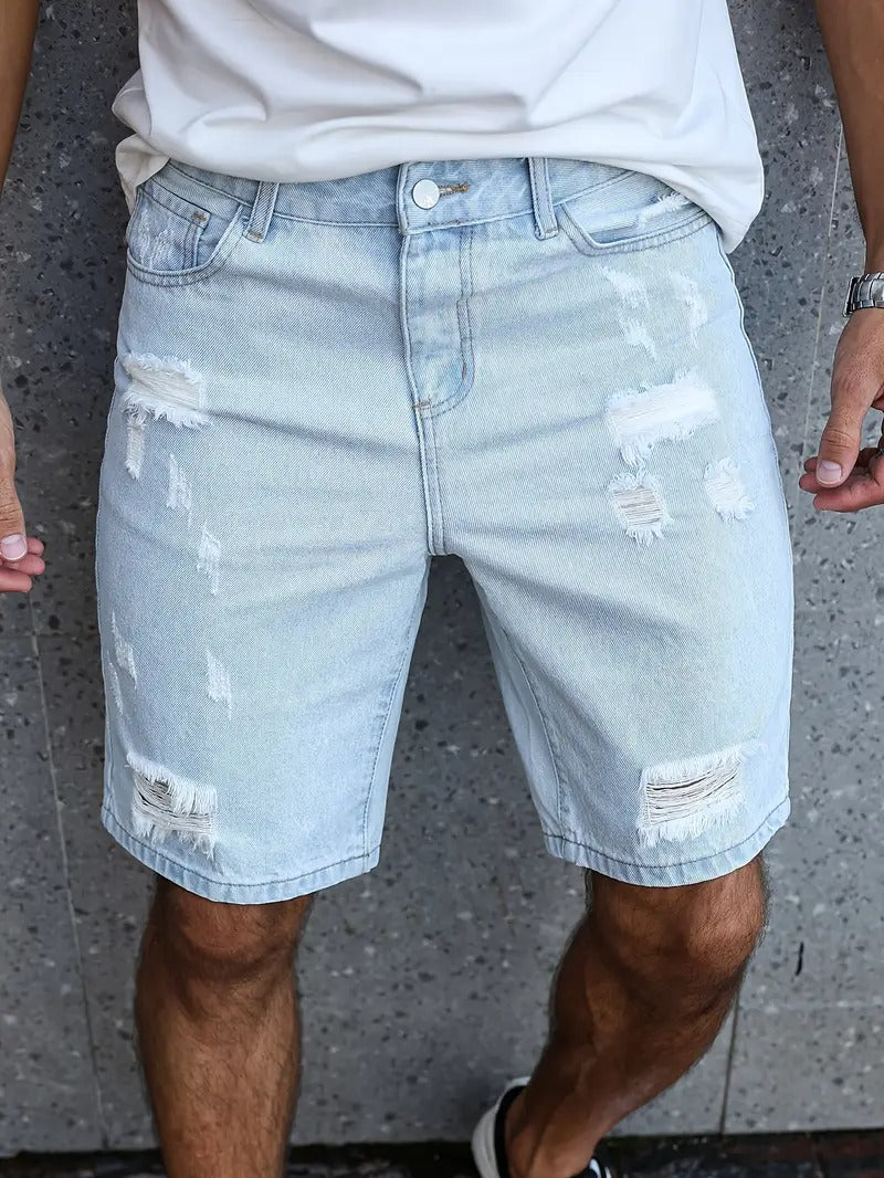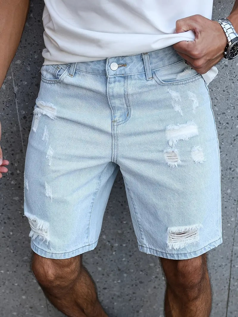 Distressed Denim Shorts - Light Blue