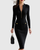 Designed for women who embody confidence and grace, this ribbed knit midi dress redefines modern sophistication. The sleek zip-front detail and structured silhouette create a look that’s both refined and empowering. With gold-accented buttons and a flattering body-contouring fit, it’s a versatile piece perfect for both business and evening occasions.