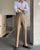 Elevate your formalwear with these refined high-waisted trousers, designed with pleated front detailing and a clean tapered leg. Crafted from a breathable, structured fabric, they feature side tab adjusters for a perfect fit without the need for a belt. A sharp double-button waistband and cuffed hems add a touch of tailored sophistication.
