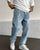 Relaxed-fit jeans in light blue denim. Lightning-effect print detailing on front. Five-pocket design. Zip fly and top button fastening. Comfortable fit with straight leg.
