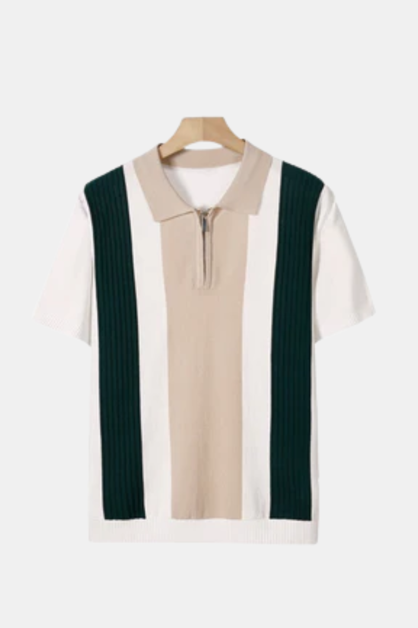 Napoli Half-Zip brings a refined vintage energy to everyday style. With wide ribbed panels, clean vertical color blocking, and a sharp half-zip collar, this short-sleeve knit is designed for the man who appreciates timeless silhouettes with a modern edge.
