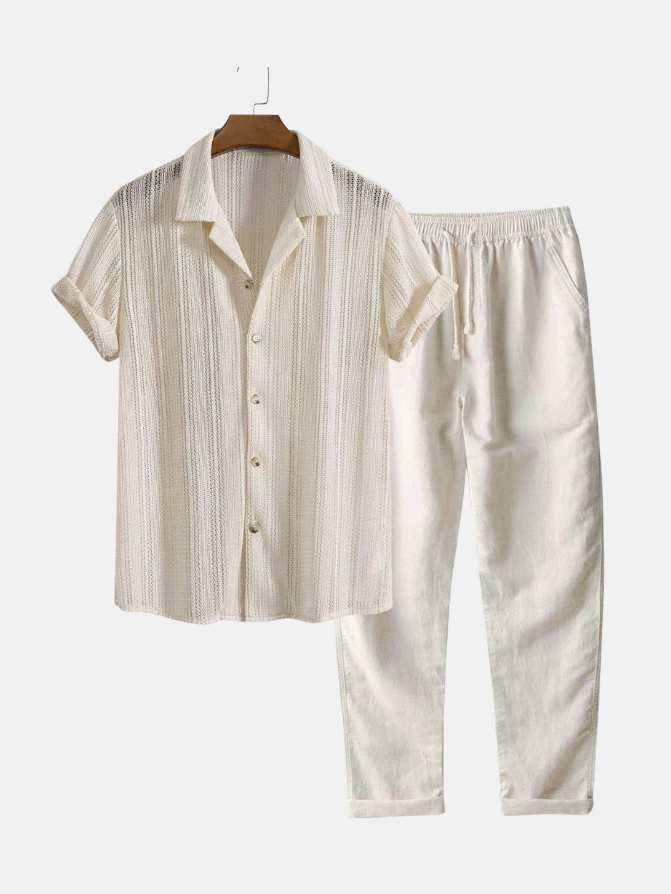 Crafted for those who value both comfort and sophistication, the Suva Ensemble embodies a laid-back yet refined aesthetic. Designed with lightweight, breathable fabrics, this set is perfect for relaxed days while maintaining an air of effortless elegance.