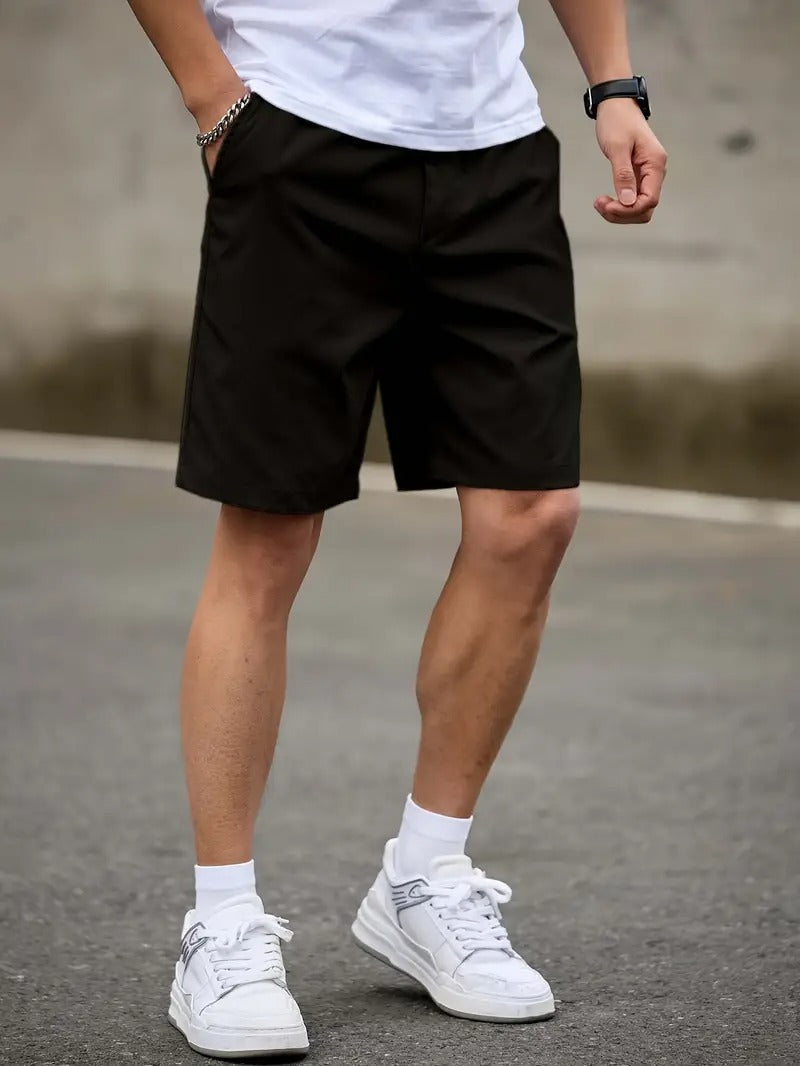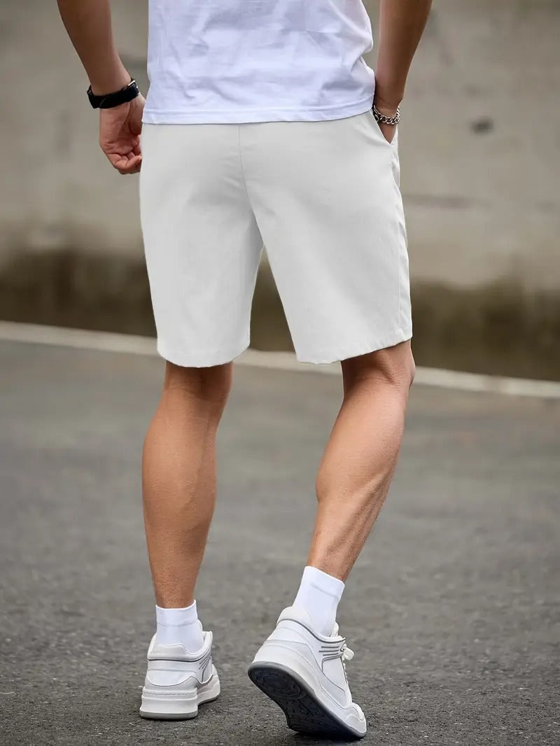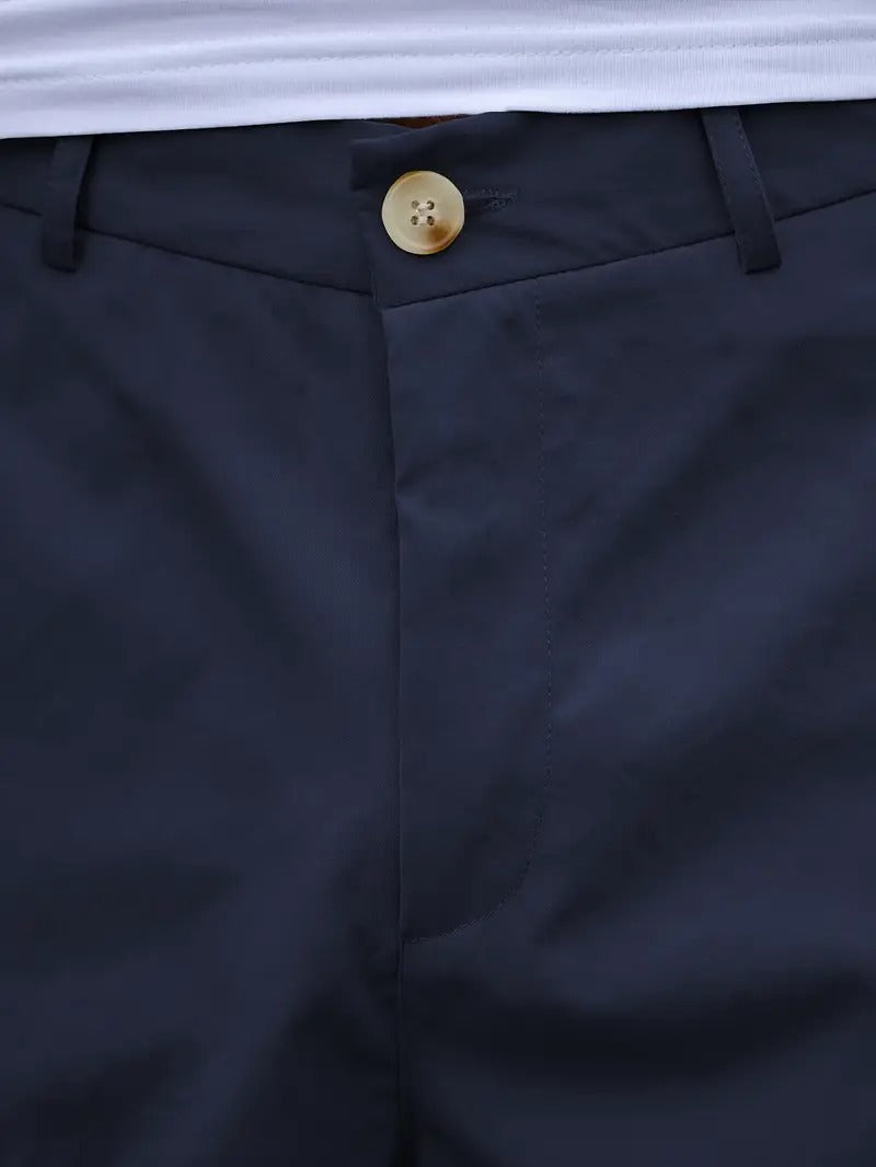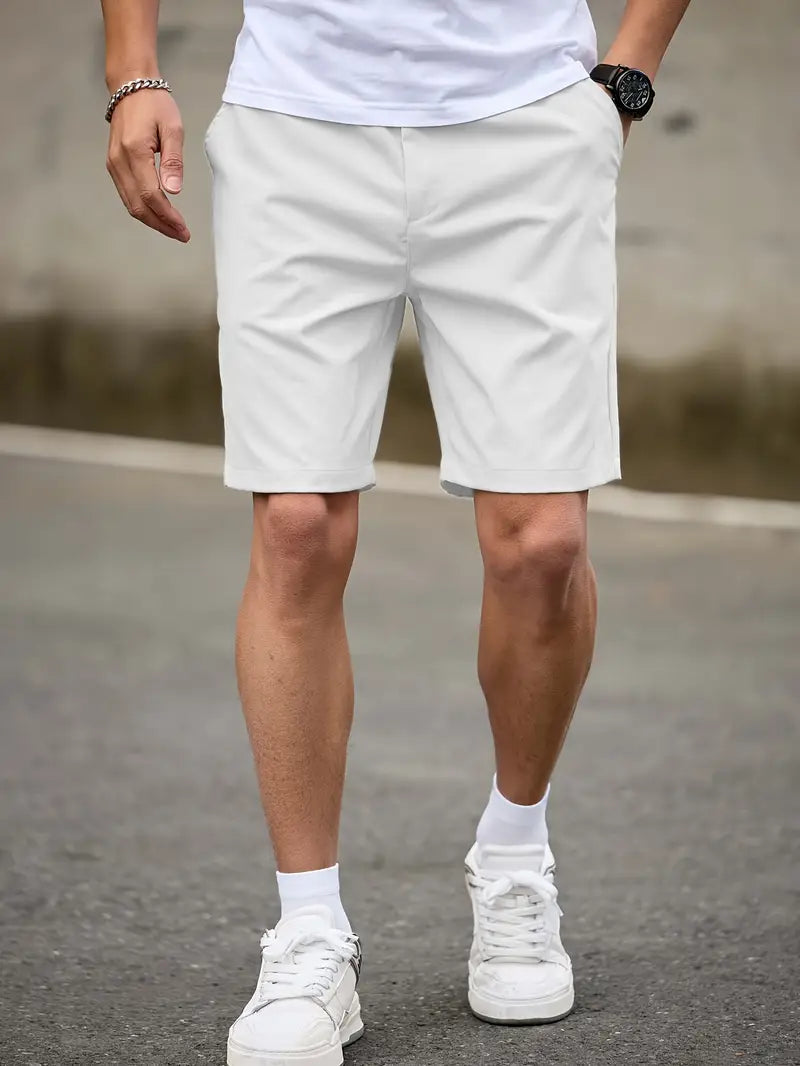 Knee-length Bermuda shorts with a clean, tailored fit. Made from lightweight cotton-blend fabric for comfort and breathability. Features side pockets, belt loops, and a front button closure. A versatile summer essential with a minimalist design.
