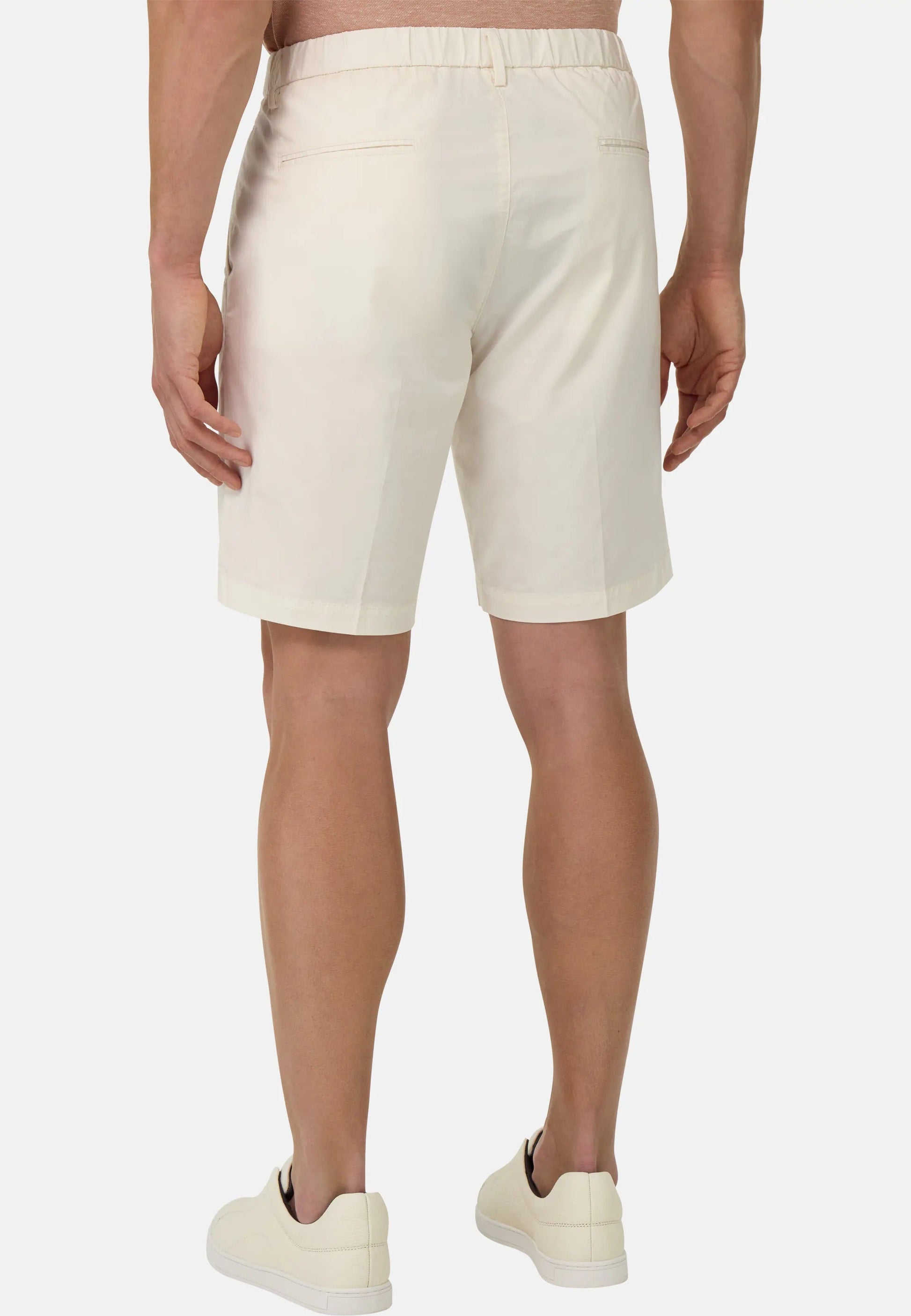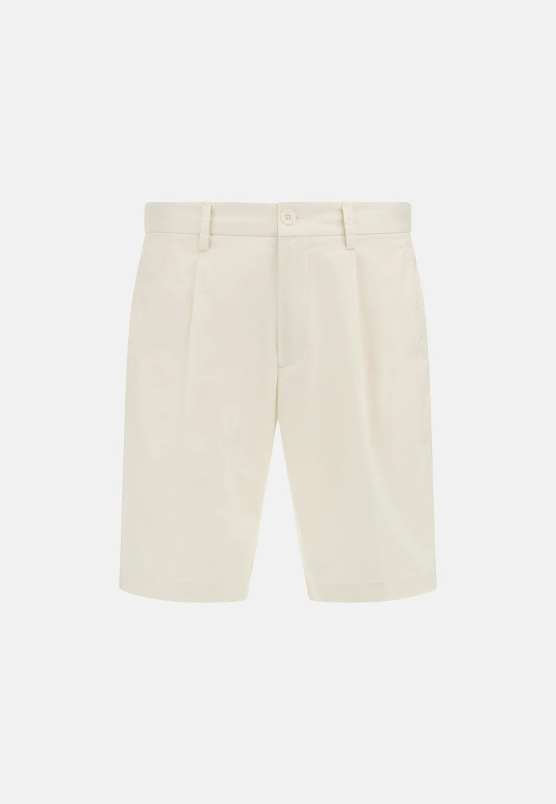 Chino-style shorts with front pleats for a refined silhouette. Crafted from lightweight cotton-blend fabric with a soft, structured feel. Mid-rise waist with belt loops and button fastening. Side seam pockets and welt back pockets complete the tailored look. Designed for polished summer dressing in versatile neutral and classic shades.
