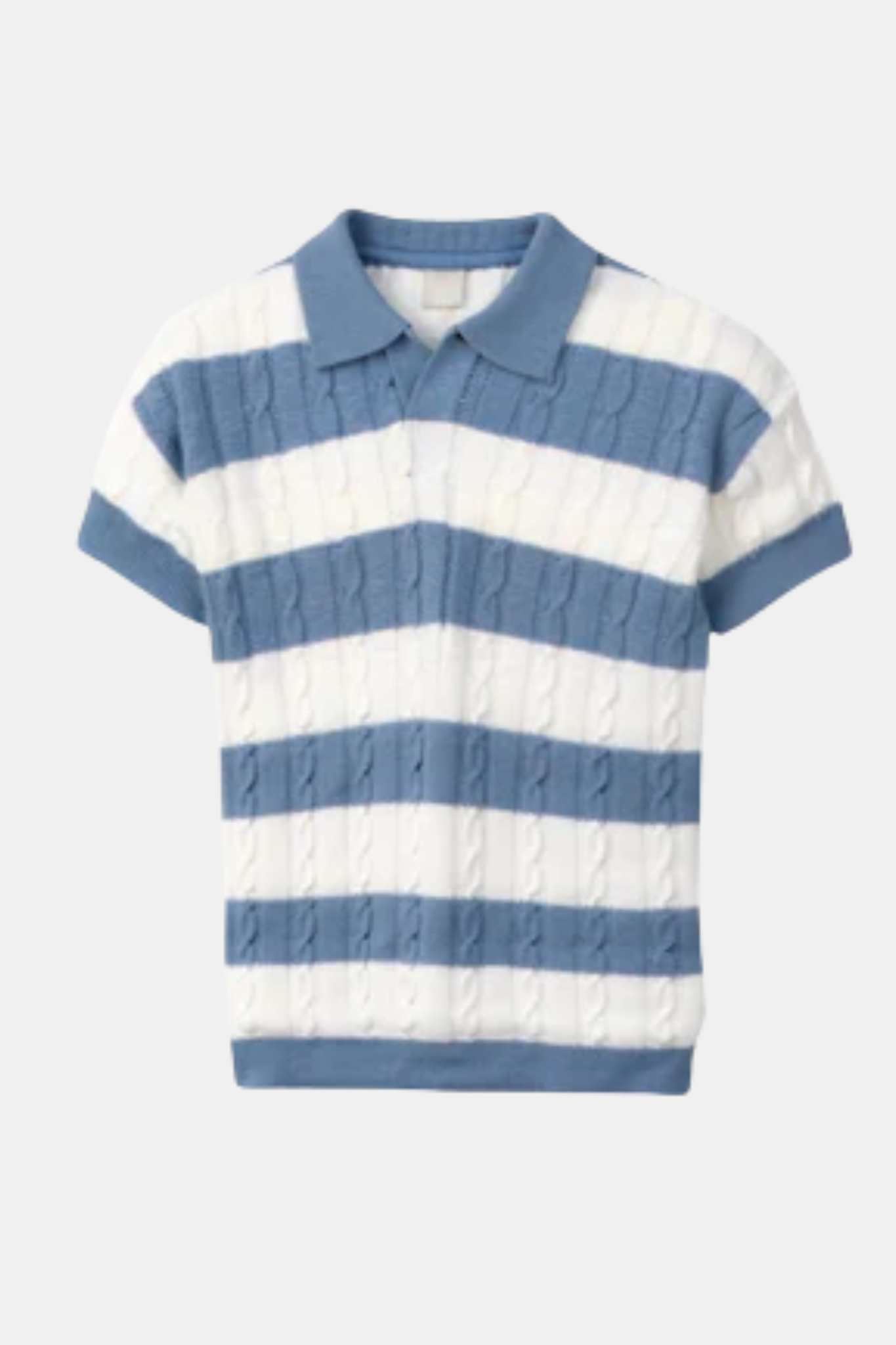 Pair the White Stripe Color Block Polo with chinos or tailored shorts for a clean, smart-casual look that works from daytime outings to evening gatherings.